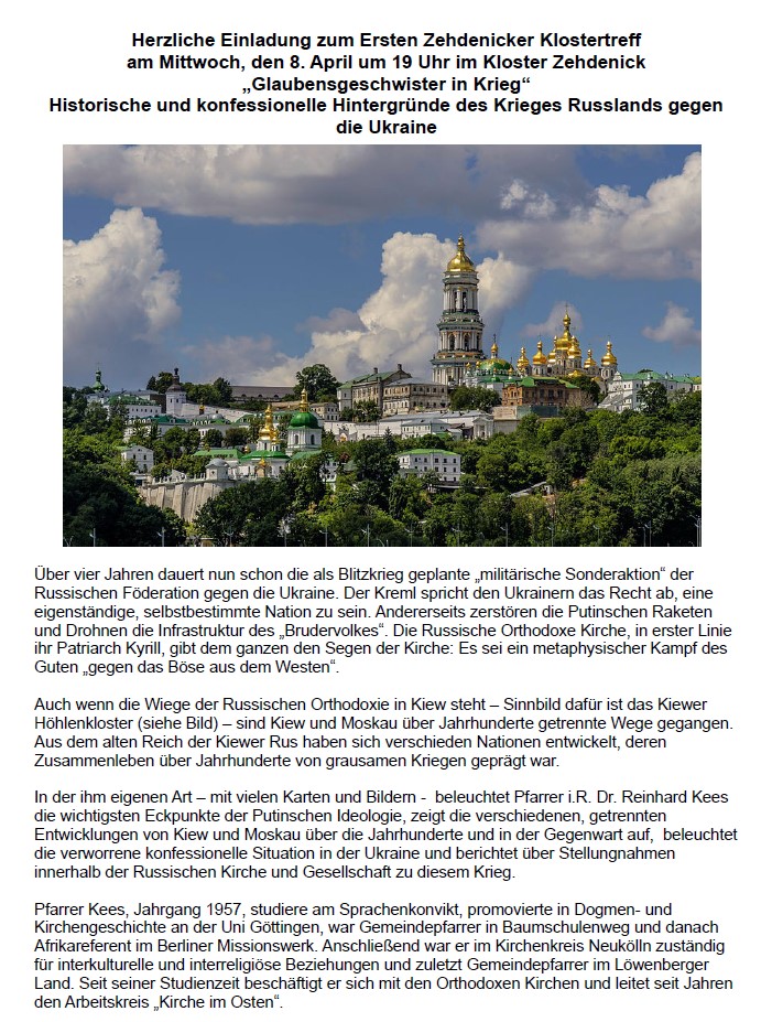 Aktuelles Aktuelles Glaubensgeschwister im Krieg Vortrag von Pfr. Dr. Reinhard Kees, Mittwoch, 8. April 19.00 Uhr
